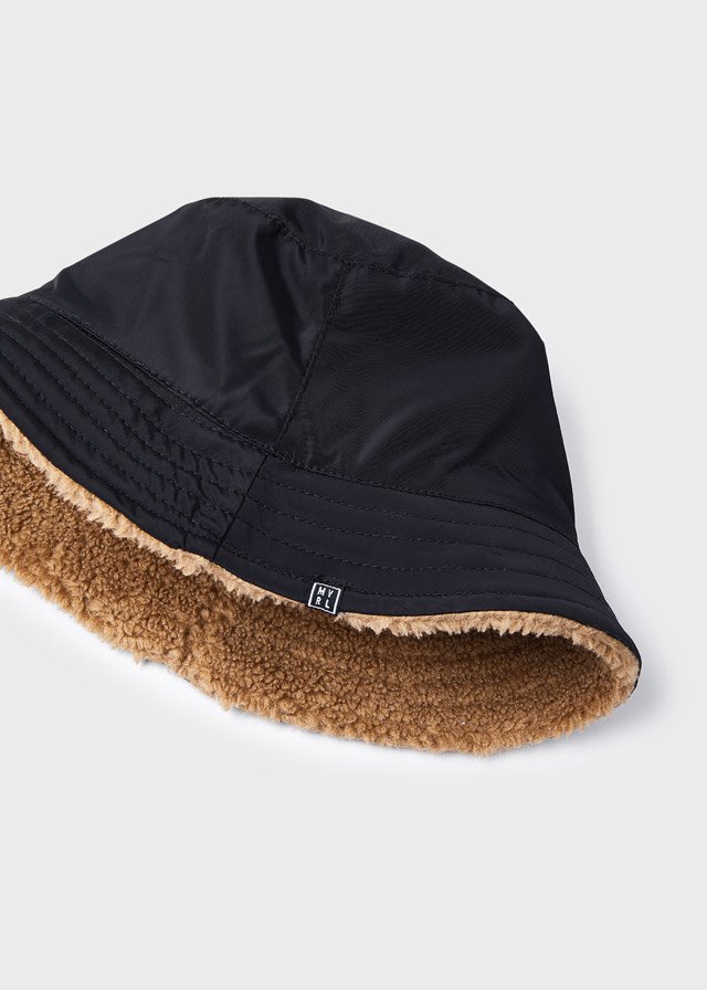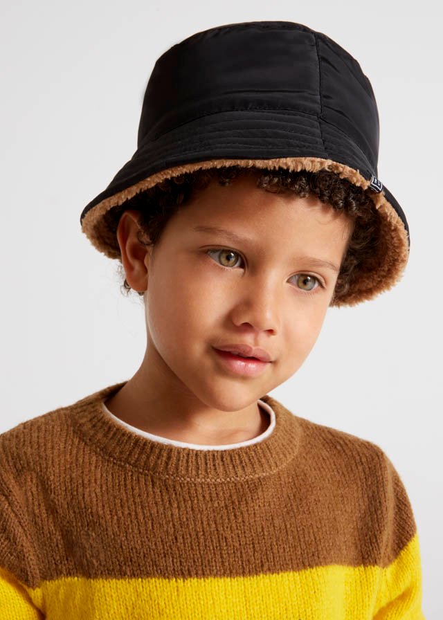 Hat for boy made from warm, flexible materials which guarantees a perfect fit and maximum comfort to protect them from the cold. This is a reversible item.