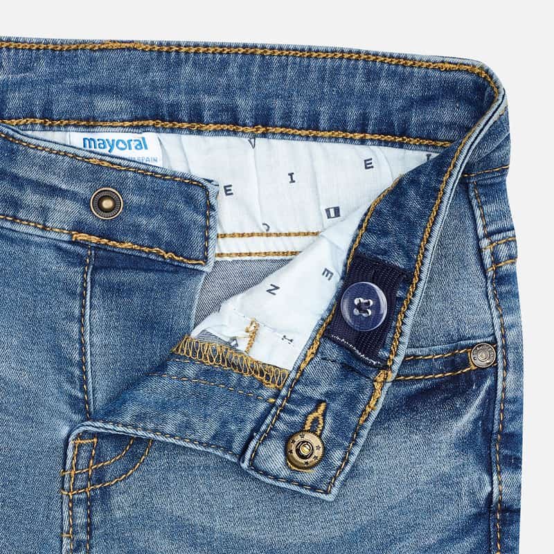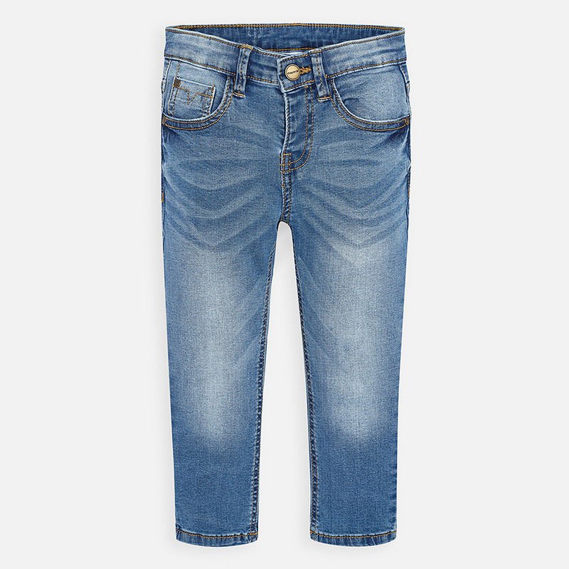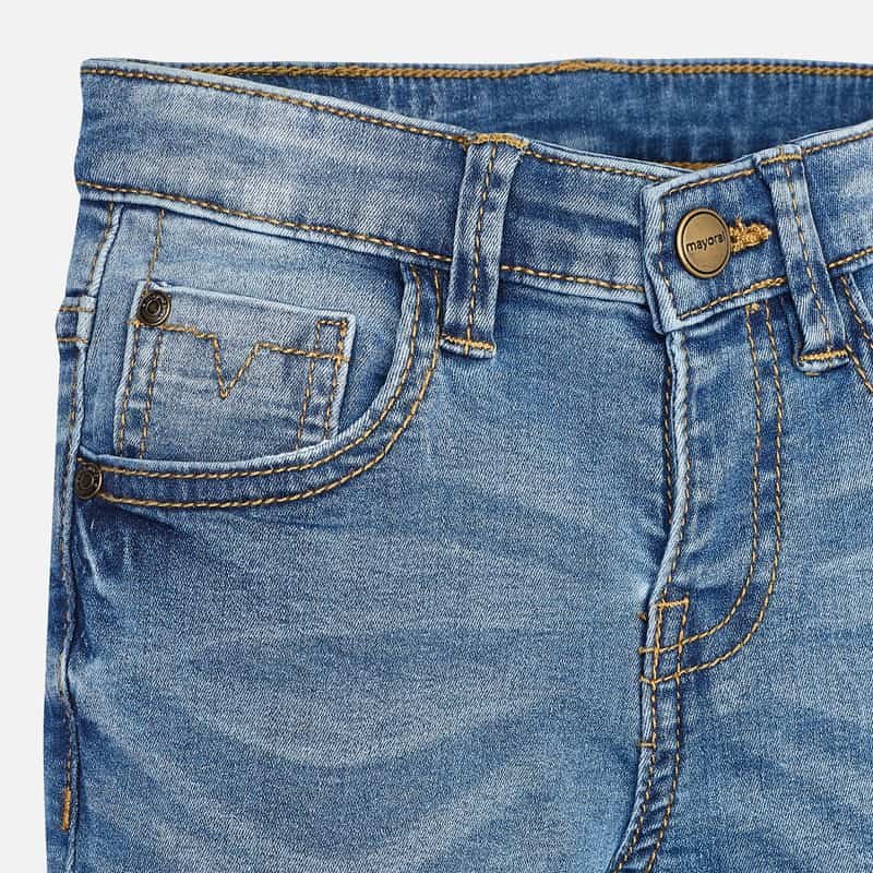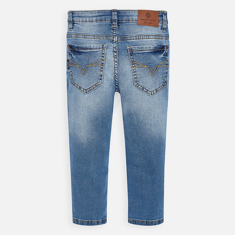 Slim fit trousers for boy which fit well to the figure. Snap-button fastening on the front. Made from 100% cotton fabric.